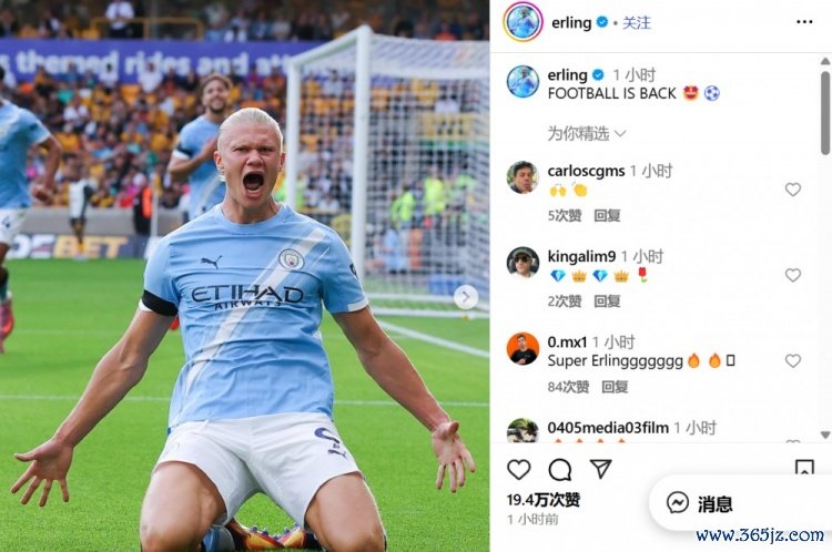 8月17日讯 在曼城4-0打败狼队赢得英超开门红后,哈兰德更新了外交媒体。