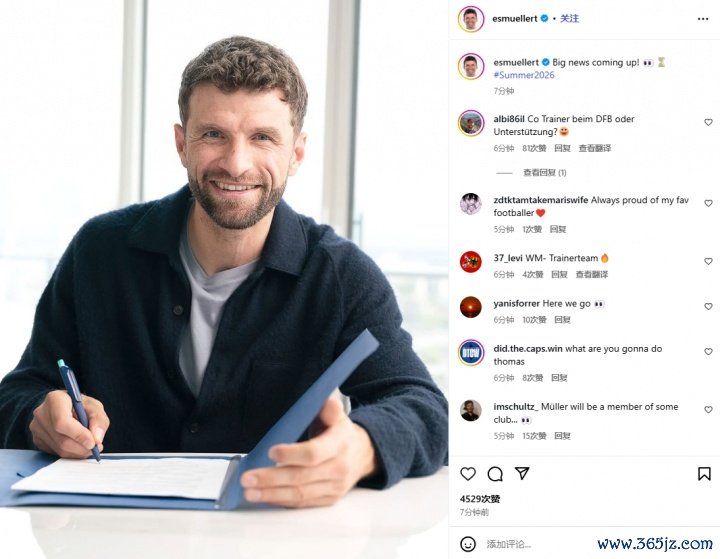 投入寰球杯?👀穆勒社媒预报将告示大新闻,带2026年夏天标签