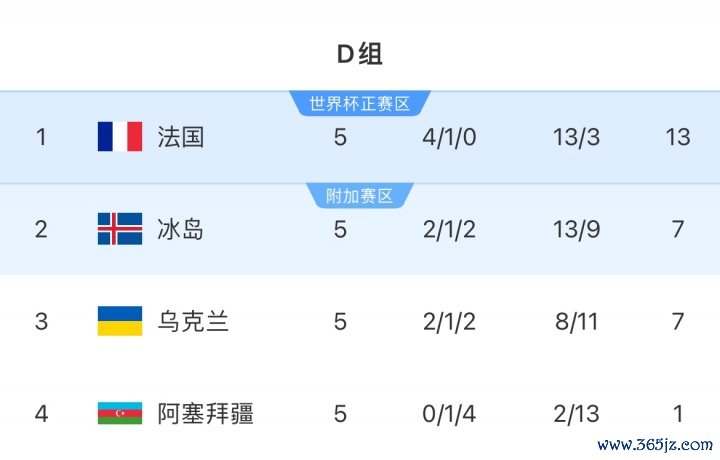 11月14日讯 世初赛欧洲区小组赛D组第5轮收尾,法国大捷锁定小组头名,提前一轮锁定2026宇宙杯!
