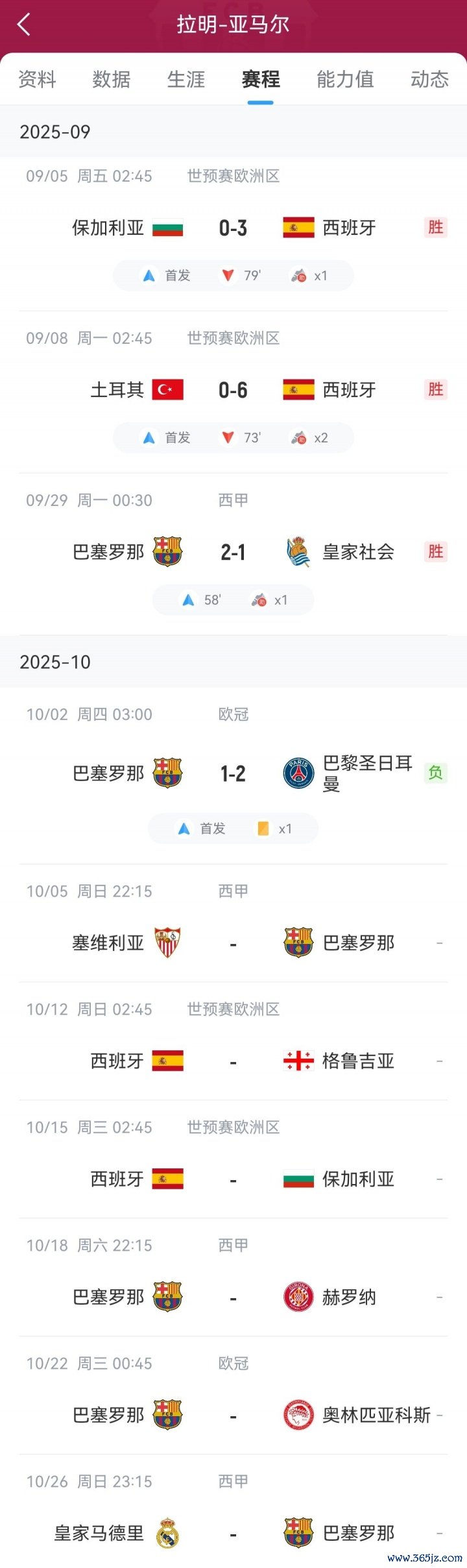 10月04日讯 巴萨官方音问,亚马尔因耻骨不适症状复发,将缺席对阵塞维利亚的比赛,展望归附本领为2-3周。