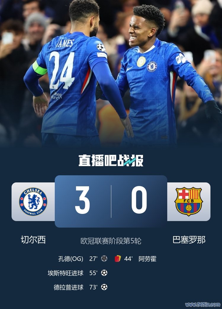 11月26日讯 欧冠联赛阶段第五轮,巴萨0-3不敌切尔西。