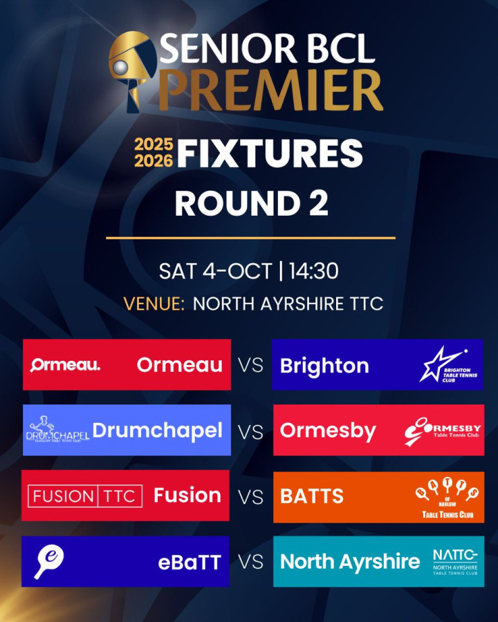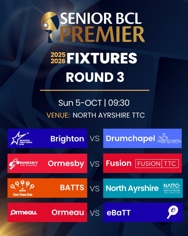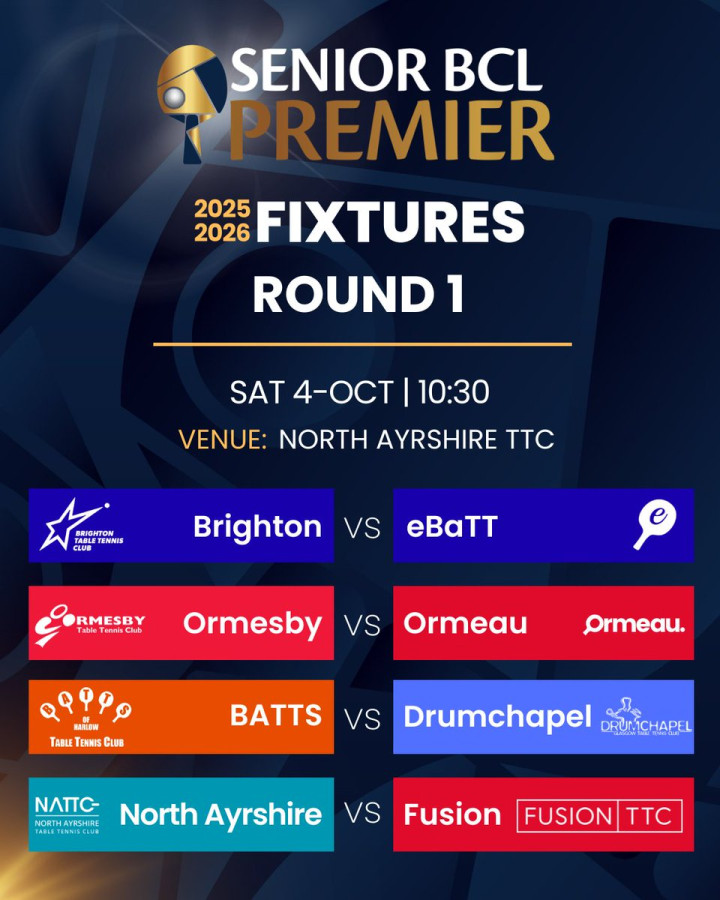 TableTennisEngland发推暗意,本周末将迎来英超BCL联赛的浓烈对决#世界杯抽签#,各队将前去北艾尔郡伸首先轮较量。当今已公布1-4轮的对阵情况,各队戮力强势开局,争夺这项prestigious的冠军奖杯。