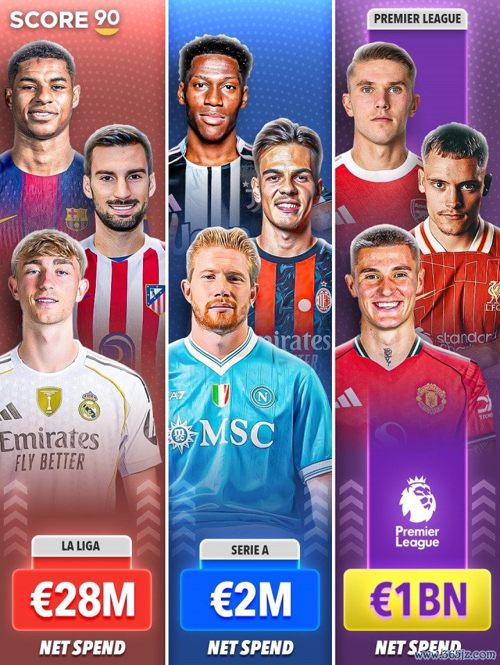 外媒SCORE90统计了欧洲四大联赛在夏日转会窗的进出情况,英超以10亿欧元的净支拨遥遥跳跃,西甲净支拨2800万欧元,意甲200万欧元,德甲则在转会阛阓上净赚1.4亿欧元。