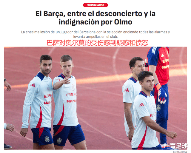 奥尔莫再次受伤,巴萨俱乐部将锋芒指向西班牙足协和主帅德拉富恩特。《阿斯报》指出,奥尔莫赶赴国度队时,还带着巴萨出具的医疗敷陈,指出奥尔莫有肌肉疲惫等不适症状,忽视国度队严慎使用球员。奥尔莫的躯壳景况欠佳,但主帅德拉富恩特已经征召并使用巴萨前腰。