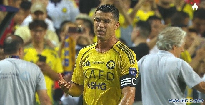 关于主裁此次判罚,利雅得胜利队长C罗至极不悦,他不停摊手抗议,却遭主裁无视,色调屈身得快哭了。