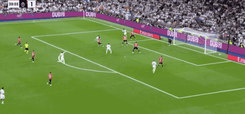 皇马还有扩大逾越上风的契机,第43分钟,居莱尔的传中被挡了一下,姆巴佩的射门确凿打在了球网上,极度可惜。