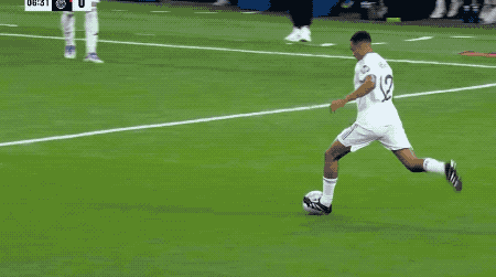 开场只消6分钟,皇马就打出精彩勾通,阿诺德展现出色的脚法,精确长传,姆巴佩高高跃起,稳稳停球,将球打进。