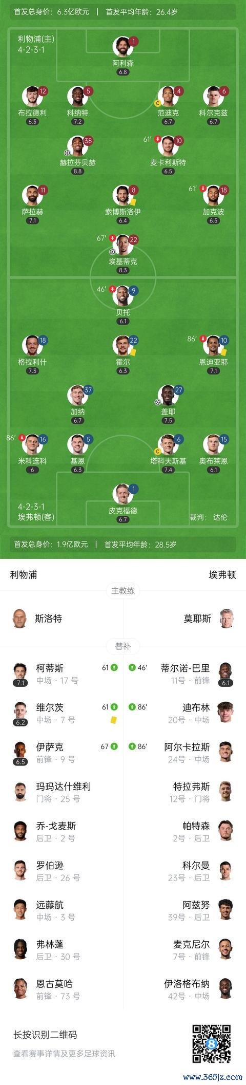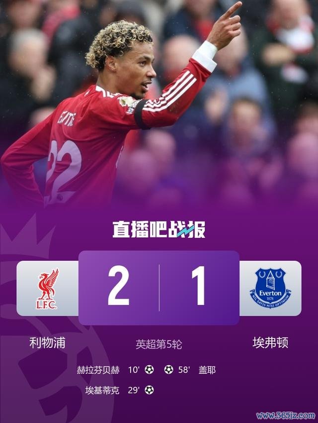 直播吧9月20日讯 北京时分9月20日19:30,2025-26赛季英超联赛第5轮迎来默西塞德德比,利物浦镇守安菲尔德球场迎战埃弗顿。上半场萨拉赫助攻赫拉芬贝赫破门,埃基蒂克接到赫拉芬贝赫直塞再下一城,利物浦暂2-0埃弗顿;下半场盖耶扳回一球,最终利物浦2-1埃弗顿,开赛5连胜积15分,先赛一场6分上风领跑积分榜。
