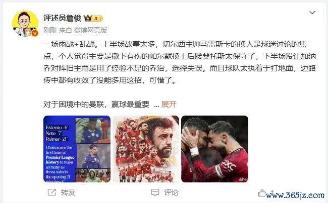 赛后,褒贬员詹俊发文点评了切尔西的推崇。关于马雷斯卡的换东说念主退换,詹俊雷同给出了我方的质疑。詹俊示意:一场雨战+乱战。上半场故事太多,切尔西主帅马雷斯卡的换东说念主是球迷商讨的焦点,个东说念主以为主若是撤下有伤的帕尔默换上后腰桑托斯太保守了,下半场没让加纳乔对阵旧主而是用了熟习不及的乔治,聘请诞妄。而且球队太执着于打大地,边路传中王人有奏效了没能多用这招,可惜了。