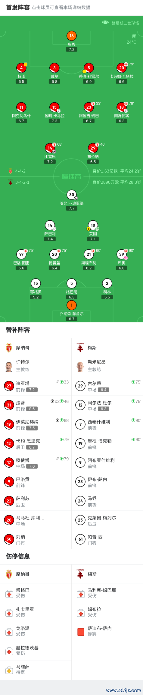 第46分钟,替补立功,法蒂门前推射破门逆转比分,摩纳哥2-1