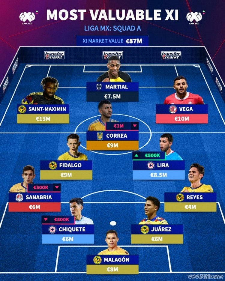 前卫:圣马克西曼(墨西哥好意思洲,1300万欧)、马夏尔(蒙特雷,750万欧)、贝加(托卢卡,1000万欧)