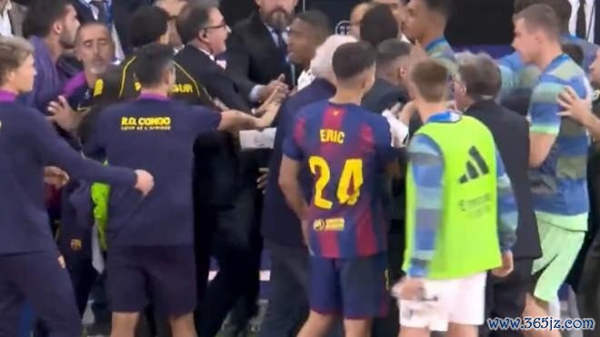 10月27日讯 据西媒eldesmarque报谈,国度德比比赛左近适度时,巴萨中场佩德里吃到第二张黄牌被罚下场,这一事件成为了“导火索”,凯旋激励了两边替补席东谈主员的“大限制混战”。时势一度失控,以致于安保不得不飞速介入,强即将两队替补席分歧隔。