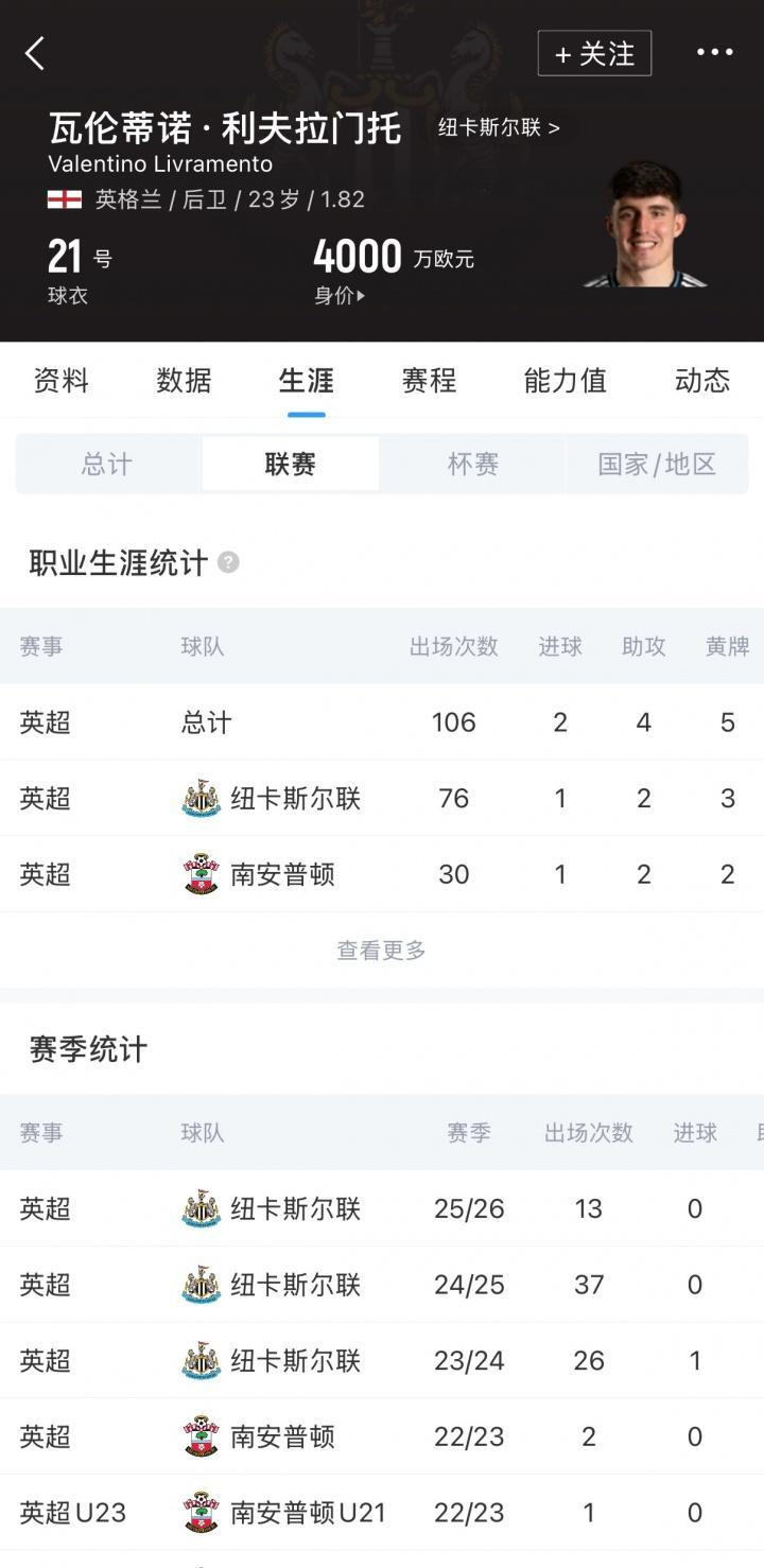 报道称,利夫拉门托与纽卡的合同还剩两年,且他目前还未表现出续约意愿。这使得纽卡处于被动地位,球员也引起了阿森纳的关注。利夫拉门托与阿尔特塔的经纪人是同一位,这可能有助于简化交易流程。