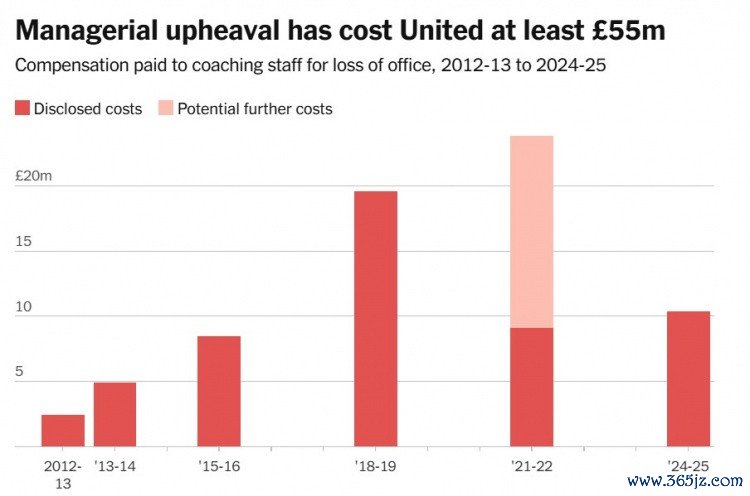 自2013年弗格森退休以来,曼联在时时更换主帅上一经付出了惊东谈主的代价。数据暴露,俱乐部支付的“离婚费”总和已高达5490万英镑。