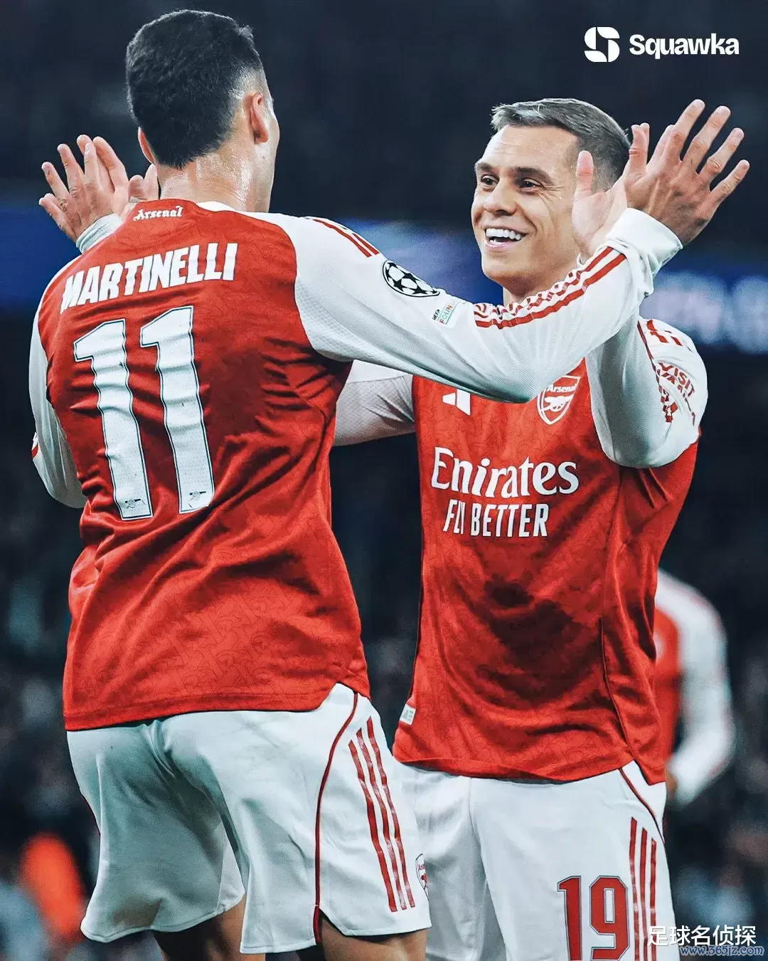 Squawka统计,记录还在延续,但凡马丁内利进球的比赛,阿森纳莫得输过,48场比赛39胜9平!