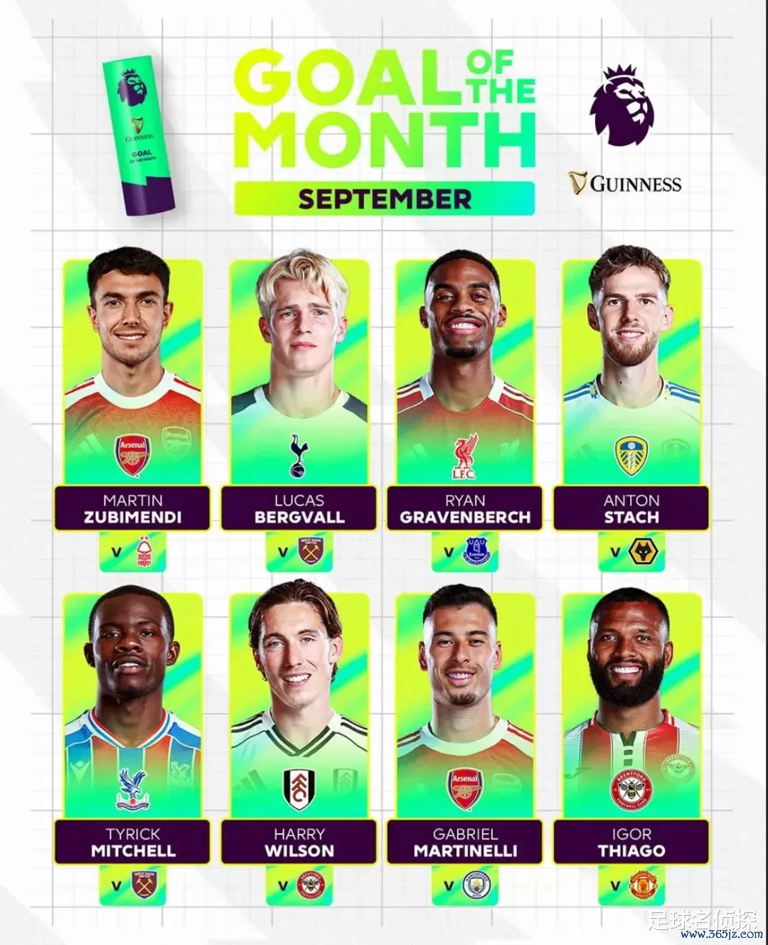 祖比门迪对诺丁汉丛林一战中的凌空破门和马丁内利对曼城比赛中的绝平进球被提名为了英超9月份最好进球候选。