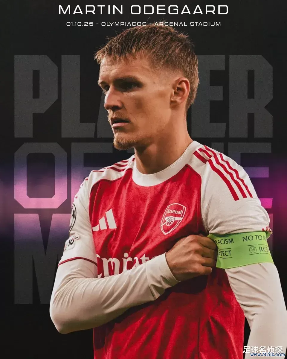 官方:厄德高被阿森纳票选为了本场比赛最好球员。同期他亦然官方评比的本场最好球员!