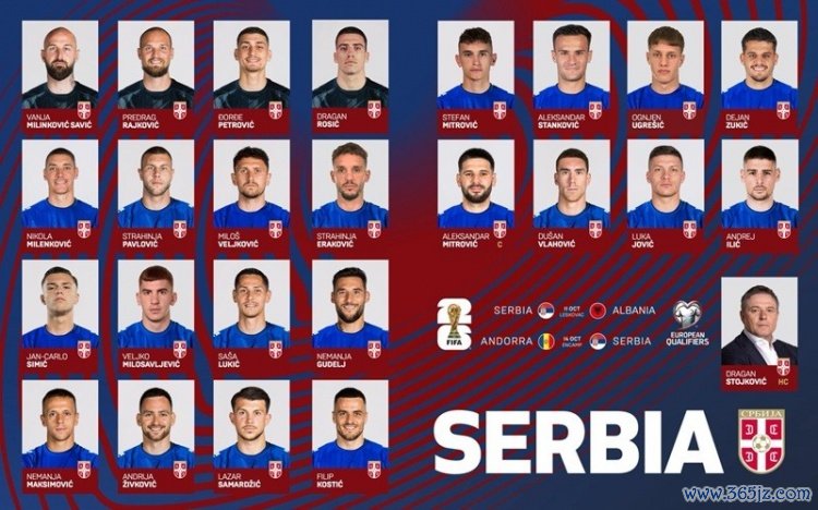 10月4日讯 塞尔维亚国度队公布了新一期大名单,参预对阿尔巴尼亚和安谈尔的两场全国杯欧洲区预选赛。
