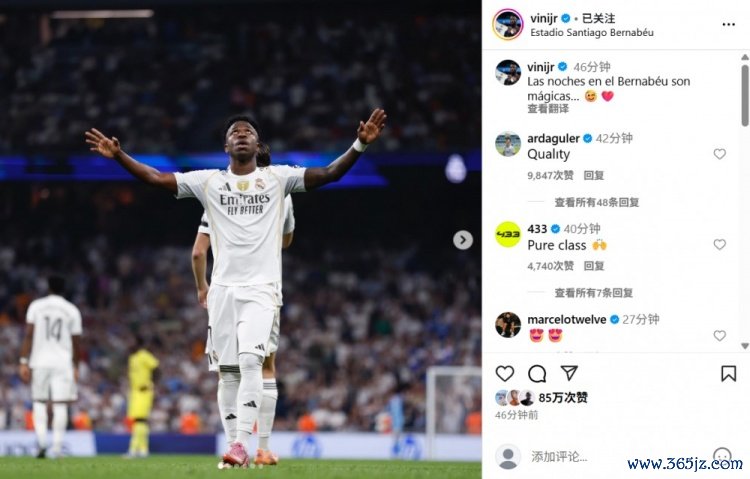 双响立功!维尼修斯晒照庆祝告捷:在伯纳乌的神奇夜晚😉❤️