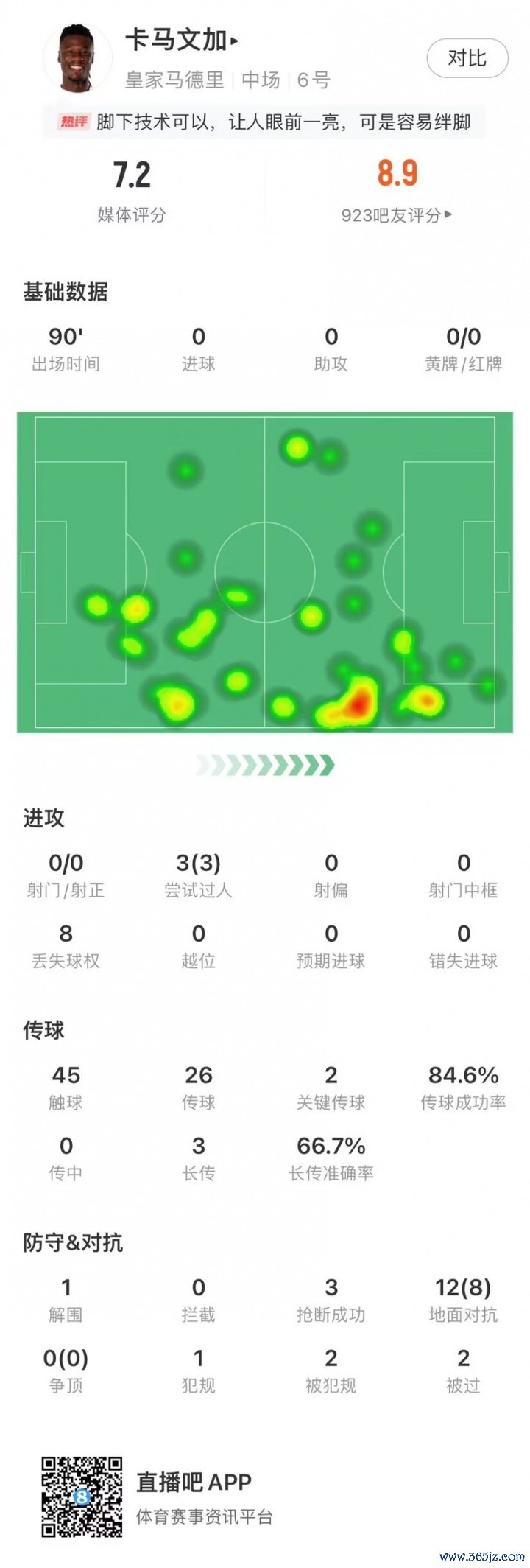 10月27日讯 西班牙国度德比,皇马2-1降服巴萨,卡马文加赛后在社媒发文写说念,“解锁新位置,右边锋✅😭”
