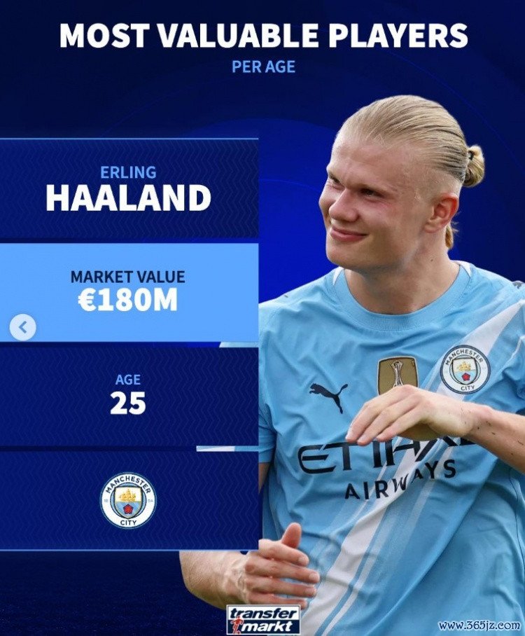 德转列16-25岁各年级最高身价: 亚马尔2亿, 贝林、哈兰德均1.8亿