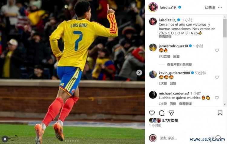 迪亚斯社媒晒出庆祝进球的像片,配文:“咱们以收效和艰深的嗅觉为2025年收官,2026年见,哥伦比亚球迷们!”